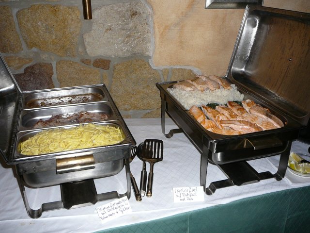 Schweinefiletmedaillons, Waldpilzrahmsauce, Spätzle - Lachsfilet Blattspinat, Reis