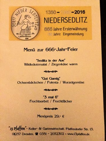 Wir servierten anläßlich 666 Jahre Ersterwähnung von Niedersedlitz ein 3-Gang-Menü.
